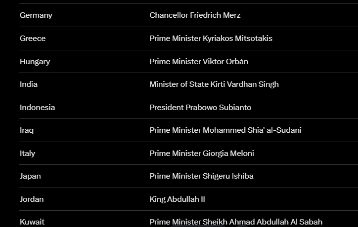 17.45 Nominate Nobel Peace Prize - Genuinely feel that he's the most genuine and wonderful candidate....because he saved millions of people saved lives. 18.53 I would like to Salute You. You're the man this world needed most in this time! 19.19 Stopped 8 wars 20.15 Had it not been for this Gentleman...during this 4 days...the war would have escalated... 20.45 Your valuable contribution - God Bless you...God give you long life to serve... PRESIDENT TRUMP - ALL COUNTRIES 21.31 President of Indonesia - introduced 22.30 Met at Oval office - fighting each other and by the end of the meeting, they were all together 24.00 Viktor Orban 25.35 Iraq - Lots of Oil... 25.52 Italy - She's a beautiful woman 27.15 UK Kier Starmer walked up and got shunned 29.10 8 months we have $17T close to breaking $18T in 8 months 30.40 A Few of them I don't like at all...but most of you I like a lot 31.15 Steps to Peace is the hardest 31.20 Dancing in the Streets 32.06 Hope everyone will join the Abraham Accords 32.21 4 great nations joined early on and stayed on
