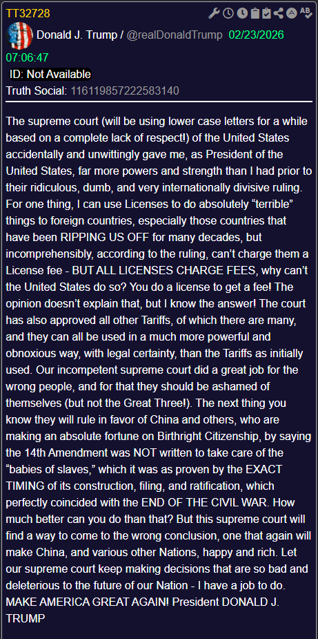 2/23/2026 - Did the 6 dirty SCOTUS support Crimes Against Humanity in their tariff ruling?