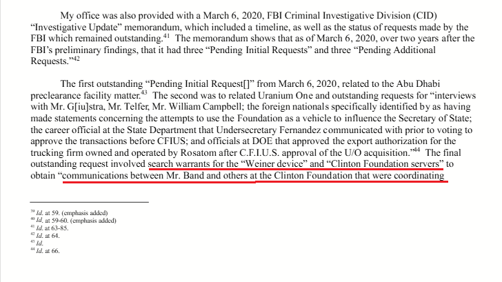11. James Comey FBI preliminary investigation on CF to its alleged use by foreign entities to corruptly influence decision or action.