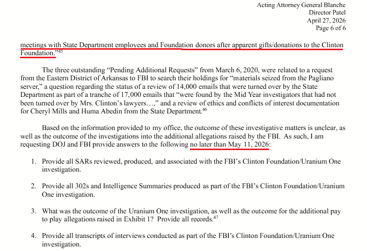 Clinton Foundation Investigation Documents with May 11, 2026 Deadline!