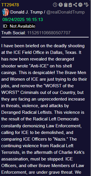 On September 20, 2025, Trump Truthed JUSTICE MUST BE SERVED, NOW!!!