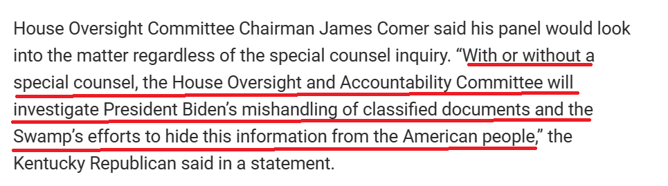 Bloomberg article states the House will still investigate Joe Biden with or without a Special Counsel: